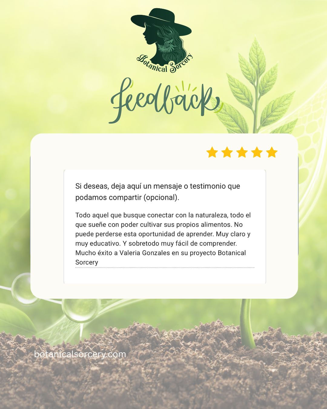 Acompañar a las personas en su proceso de reconexión con la tierra a través de talleres, plantas y contenido educativo, promoviendo el aprendizaje desde la práctica y el respeto por la energía viva de cada planta.
